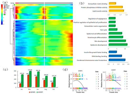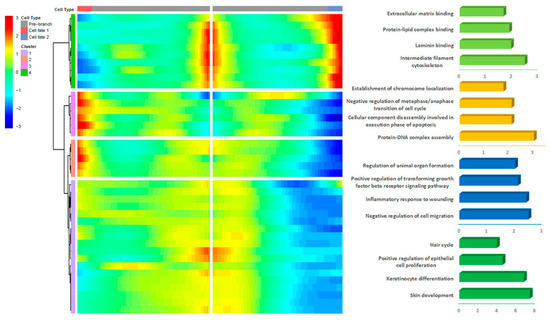 - Gupta, K.; Levinsohn, J.; Linderman, G.; Chen, D.; Sun, T.Y.; Dong, D.; Taketo, M.M. Single-cell analysis reveals a hair follicle dermal niche molecular differentiation trajectory that begins prior to morphogenesis. Dev. Cell 2018, 48, 17–31. [Google Scholar] [CrossRef]