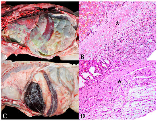 - Salogni, C.; Lazzaro, M.; Giovannini, S.; Vitale, N.; Boniotti, M.B.; Pozzi, P.; Pasquali, P.; Alborali, G.L. Causes of Swine Polyserositis in a High-Density Breeding Area in Italy. J. Vet. Diagn. Investig. 2020, 32, 594–597. [Google Scholar] [CrossRef]