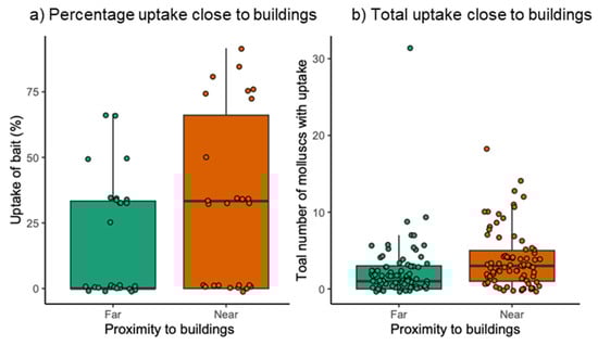 | (b) Total number showing uptake | Distance | 4.98 | 1 | 0.026 |