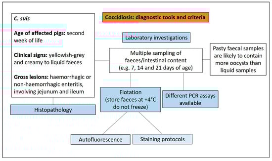 - Joachim, A.; Ruttkowski, B.; Sperling, D. Detection of Cystoisospora suis in faeces of suckling piglets—When and how? A comparison of methods. Porc. Health Manag. 2018, 4, 1–11. [Google Scholar] [CrossRef] [PubMed]