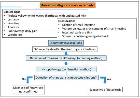 - Segalés, J.; Martinez, J.; Castellà, J.; Darwich, L.; Domingo, M.; Mateu, E.; Martin, M.; Sibila, M. Laboratory diagnosis of enteric disorders. In Handbook of Laboratory Diagnosis in Swine; Servet Editorial—Grupo Asis Biomedia: Zaraoza, Spain, 2013; pp. 64–73. [Google Scholar]