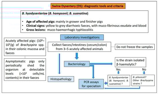 - Burrough, E.R. Swine Dysentery: Etiopathogenesis and Diagnosis of a Reemerging Disease. Vet. Pathol. 2017, 54, 22–31. [Google Scholar] [CrossRef] [PubMed]