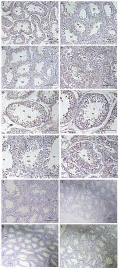 - Robert, N.; Yan, C.; Si-Jiu, Y.; Bo, L.; He, H.; Pengfei, Z.; Hongwei, X.; Jian, Z.; Shijie, L.; Qian, Z. Expression of rad51 and the histo-morphological evaluation of testis of the sterile male cattle-yak. Theriogenology 2021, 172, 239–254. [Google Scholar] [CrossRef]