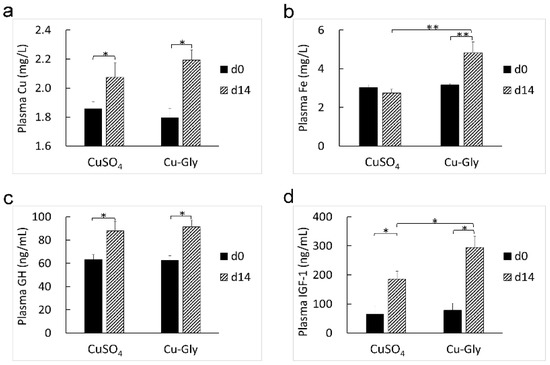 - Wang, J.; Zhu, X.; Guo, Y.; Wang, Z.; Zhao, B.; Yin, Y.; Liu, G. Influence of Dietary Copper on Serum Growth-Related Hormone Levels and Growth Performance of Weanling Pigs. Biol. Trace Elem. Res. 2015, 172, 134–139. [Google Scholar] [CrossRef]