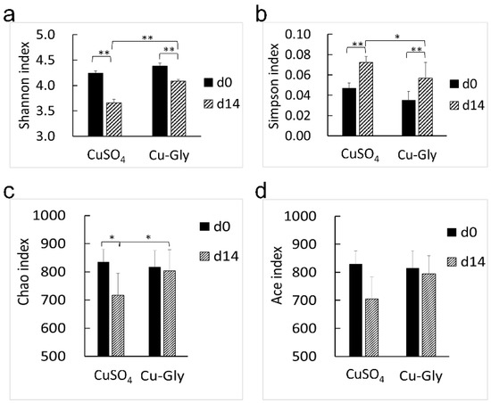 APA StyleLei, H., Du, Q., Lu, N., Jiang, X., Li, M., Xia, D., & Long, K. (2023). Comparison of the Microbiome-Metabolome Response to Copper Sulfate and Copper Glycinate in Growing Pigs. Animals, 13(3), 345. https://doi.org/10.3390/ani13030345