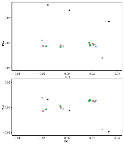 - Cardini, A.; O’Higgins, P.; Rohlf, F.J. Seeing distinct groups where there are none: Spurious patterns from between-group PCA. Evol. Biol. 2019, 46, 303–316. [Google Scholar] [CrossRef]