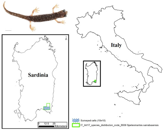 The Sette Fratelli cave salamander, Speleomantes sarrabusensis Lanza et al., 2001 (Figure 1), is one of the European amphibian species with the smallest distribution (≤70 km2); it can be found only in the most south-eastern area of Sardinia (Italy) [1].