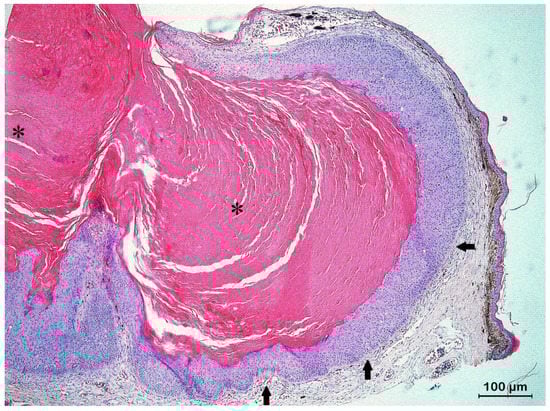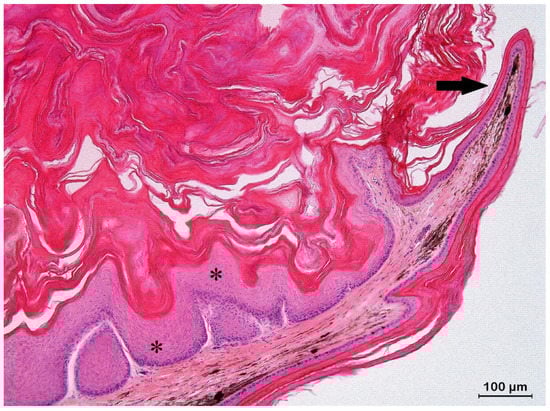 - Mauldin, E.A.; Peters-Kennedy, J. Integumentary System. In Jubb, Kennedy & Palmer’s Pathology of Domestic Animals, 6th ed.; Maxie, M.G., Ed.; Elsevier Health Sciences: St. Louis, MO, USA, 2015; Volume 1, pp. 509–736. [Google Scholar]