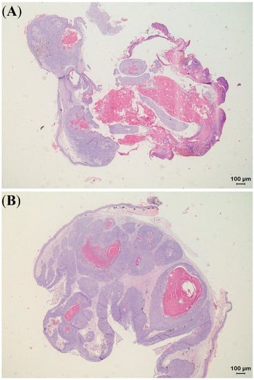- Scott, D.W.; Miller, W.H.; Griffin, C.E. Neoplastic and Non-Neoplastic Tumors. In Muller & Kirk’s Small Animal Dermatology, 6th ed.; Scott, D.W., Miller, W.H., Griffin, C.E., Eds.; Elsevier Health Sciences: St. Louis, MO, USA, 2001; Volume 1, pp. 1236–1414. [Google Scholar]