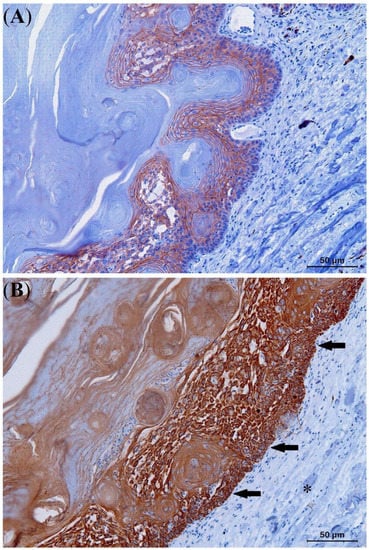 - Orós, J.; López-Yánez, M.; Rodríguez, F.; Calabuig, P.; Castro, P.L. Immunohistochemical staining patterns of alpha-keratins in normal tissues from two reptile species: Implications for characterization of squamous cell carcinomas. BMC Vet. Res. 2018, 14, 219. [Google Scholar] [CrossRef]