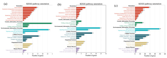 Annotation diagram of the KEGG pathway. (a) Annotated diagram of Smsh vs. Smsc KEGG pathway. (b) Annotated diagram of Smsh vs. Smsl KEGG pathway. (c) Annotated diagram of Smsl vs. Smsc KEGG pathway.