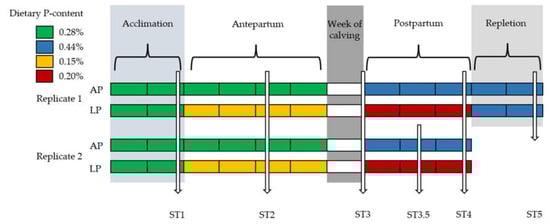 - Wächter, S.; Cohrs, I.; Golbeck, L.; Scheu, T.; Eder, K.; Grünberg, W. Effects of restricted dietary phosphorus supply during the dry period on productivity and metabolism in dairy cows. J. Dairy Sci. 2022, 105, 4370–4392. [Google Scholar] [CrossRef] [PubMed]
