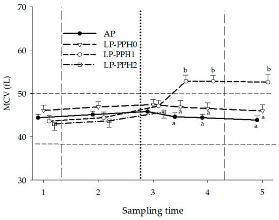 | LP-PPH0 LP-PPH1 LP-PPH2 | 30.9 ± 0.9 a | 30.3 ± 0.9 a | 31.8 ± 0.9 a | 27.3 ± 1.6 a,b | 26.0 ± 0.9 b,* | 26.3 ± 1.1 b | <0.0001 | <0.0001 | 0.0002 |