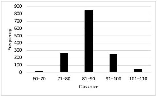 The mean size of the nesting females was 85.71 cm CCL (range = 60–110 cm; SD ± 6.831; n = 1500) (Figure 2). The mean of SCL was 77.9 cm (range = 64.2–93.4 cm; SD ± 5.31; n = 100 females).