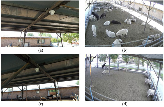 The video of the estrus crawling behavior of ewes in this study was collected from the Xinao animal husbandry and mutton sheep breeding base in Lanzhou Bay Town, Manas County, Xinjiang Uygur Autonomous Region. Through a field investigation, we found that the estrus crawling behavior of ewes mainly occurred in the shaded area; therefore, this study chose to be in the shaded area for video capture. The shaded area is 33.75 m long and 13 m wide. Two surveillance cameras with a resolution of 4 million pixels (Hikvision DS-2CD2346FWD-IS dome network cameras) (Hangzhou Hikvision Digital Technology Co., Hangzhou, China) are installed in the shaded area, and the camera installation height is 2.7 m.