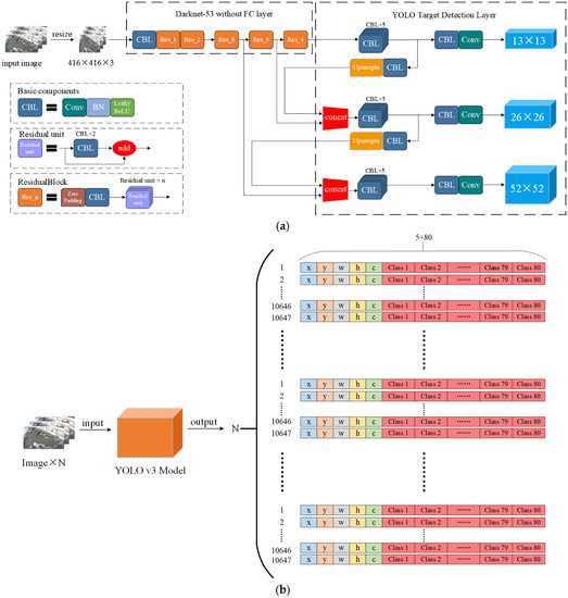 The YOLO v3 model modifies the YOLO v2 model presented by Redmon [