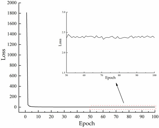 Although our model has a high initial loss value, the loss value decreases rapidly as the training proceeds. This is because the network model updates the node weights during the back-propagation process of training, and the updated weights make the model’s fitting ability gradually improve.