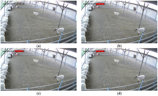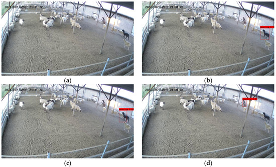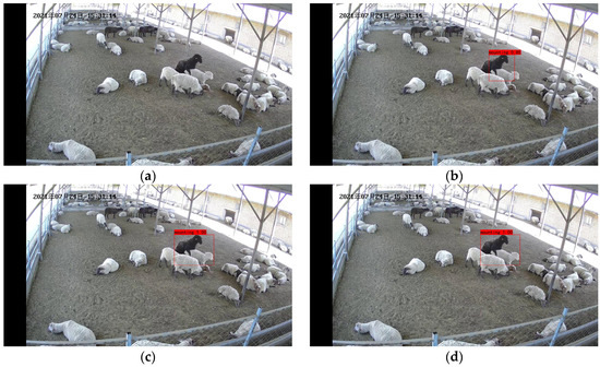 Figure 12d shows our model recognition results. Our model was able to identify ewes in estrus located at the edge of the video image, with 67% estrus detection for ewes and no false identification.