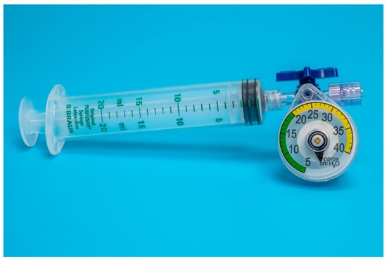 Nowadays, a diverse range of cuff manometers are available [,]. Some common examples are aneroid manometers, such as the VBM cuff pressure gauge, the Posey Cufflator or special cuff inflation syringes with included pressure gauges, such as the Tru-Cuff and the AG-Cuffill syringes. Many veterinary facilities use manual techniques, such as those stated above, or they use repurposed aneroid manometers that are normally used for blood pressure measurement due to greater availability and lower cost. The use of repurposed manometers, however, is not recommended, as they are neither made to measure the low pressures required for cuff inflation, nor do they produce reliable readings [].