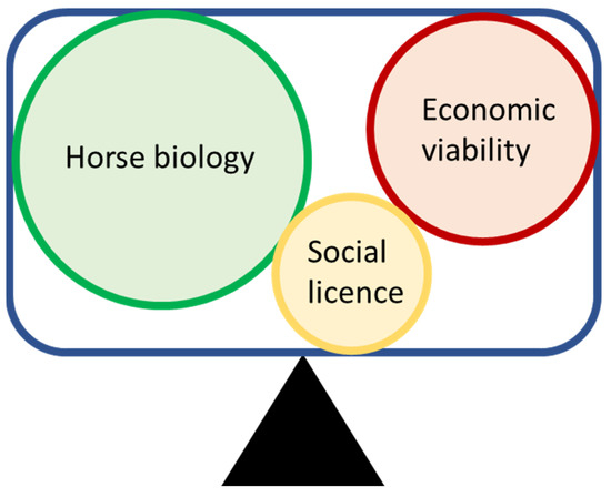 Determination of the acceptable level of risk, injury and wastage within the system may become the dominant driver of the processes within the industry. Proponents of horse welfare may argue that no risk is the only acceptable level, however, this would be an impossibility within any biological system without the complete cessation of horse racing. Within every biological system, there must be loss and replacement. However, the focus of sustainability of the Thoroughbred industry may need to shift from viewing the horse as part of a production system, to optimisation of the system with a horse-centric welfare perspective [83].