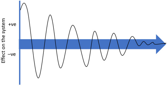 The racing industry is not a simple linear process, as can be seen by the biology of fracture risk and quadratic relationship with high-speed exercise [64]. Single changes to improve the effect on one industry moderator in response to risk factors considered in isolation may negatively (or positively) affect different components of each of the other two industry moderators. This may create an oscillation in the entire system, as the three moderators fluctuate with competing pressures until the industry re-establishes an equilibrium. The overall effect of industry response to an isolated change is theoretically modelled in Figure 3. Therefore, simply acting on risk factors (or reducing stress points) identified in isolation, some of which may not be practically modified, may not result in an overall benefit to the horses within the system.