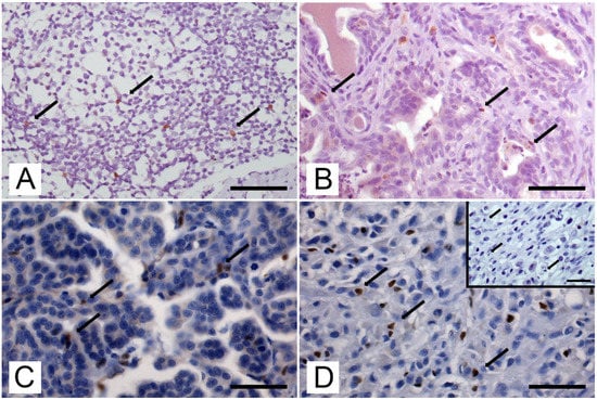 - Kim, J.H.; Hur, J.H.; Lee, S.M.; Im, K.S.; Kim, N.H.; Sur, J.H. Correlation of Foxp3 positive regulatory T cells with prognostic factors in canine mammary carcinomas. Vet. J. 2012, 193, 222–227. [Google Scholar] [CrossRef]