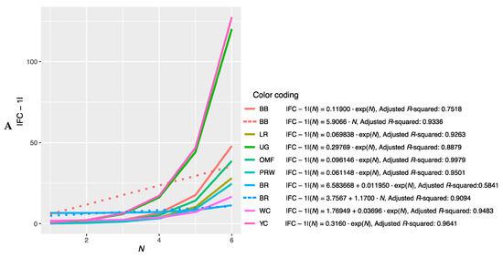 3.2.3. Determining the Slope of the Function |FC − 1| = f(N)
