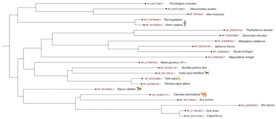 An important function in COVID-19 pathogenesis has been demonstrated for the host receptor code for ACE2, which determines the specificity and range of interaction between the virus and the receptor [78]. The amino acid parts of the ACE2 receptor of different organisms indicate the phylogenetic distance to the human ACE2 receptor, and show the ACE2 receptor sequences of pangolins, cats, and dogs are close to each other (Figure 1). Additionally, the ACE2 receptor in these animals can be used to predict the SARS-CoV-2 S protein in domestic cats, hamsters, pigs, dogs, as well as other species [58]. In addition to the human ACE2, the spike of SARS-CoV-2 shows extensive tropism for ACE2 in dogs, cats, and cattle [79] suggesting the susceptibility of dogs to SARS-CoV-2 infection.
