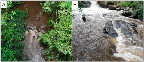 Turbid water at sampling sites. (A) KP4 from the Klang Phat River and (B) K11 from the Klang River.