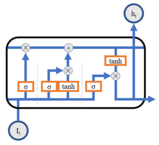 is calculated. The output step is the third step. The second stage data are fed into the sigmoid and tanh functions to obtain the input gate value and state information. The cell state is updated based on the most recent time data. The value of the output gate is determined to obtain the output data