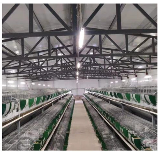The environmental variables of the rabbit house were collected at Qingdao Kangda Rabbit Co. Ltd. in Shandong Province, China. The company has a large rabbit breeding base. The rabbit house is a 46-m-long enclosed structure with a span of 11.7 m and a height of 4.9 m.