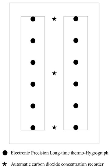Figure 4 depicts the current situation inside the rabbit house. The environmental variables inside the rabbit house were collected using twelve automated temperature and humidity recorders (Apresy, 179-TH) and three automated carbon dioxide recorders (Tian Jian Hua Yi, EZY-1).