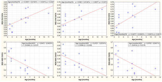 - Wang, K.; Song, Q.; Zhang, F.; Chen, Z.; Hou, C.; Tang, Y.; Chen, S.; Hao, Q.; Shen, H. Age-related changes of the diffusion tensor imaging parameters of the normal cervical spinal cord. Eur. J. Radiol. 2014, 83, 2196–2202. [Google Scholar] [CrossRef]