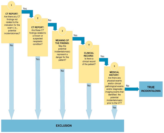 Decision algorithm for the inclusion or exclusion of tomographic findings as incidentalomas.
