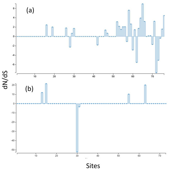 - Kosakovsky Pond, S.L.; Frost, S.D.W. Not So Different After All: A Comparison of Methods for Detecting Amino Acid Sites Under Selection. Mol. Biol. Evol. 2005, 22, 1208–1222. [Google Scholar] [CrossRef] [PubMed]