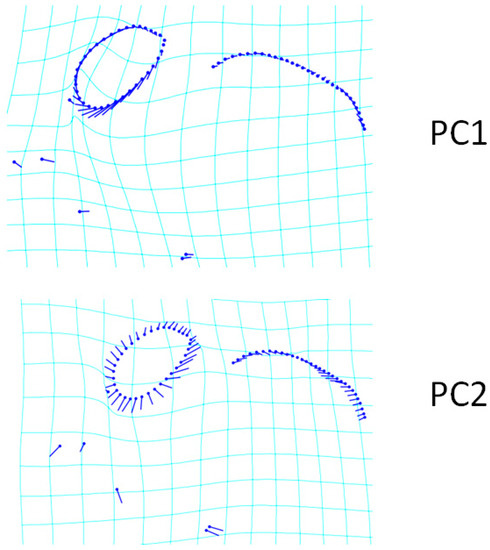 Geometric morphometrics has been adopted to explain the evolutionary trends in the skull shape in monkeys [38]. It also allows us to understand the influence of diet on determining the shape of the skull in related carnivorous species. [39]. The shape of the orbit has also been reported to exhibit sexual dimorphism in humans [40]. Xiang et al. [41] studied the differences in the shapes of the orbits in different human populations. In the study presented here, an orbit shape analysis was performed to reveal the differences between cat breeds, and it proved to be effective.
