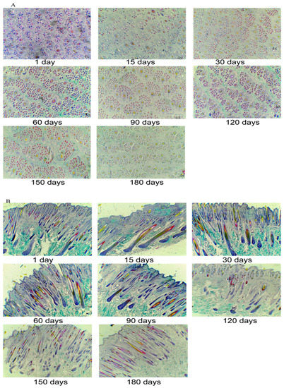 3.3. The Development of Hair Follicles at Different Phases