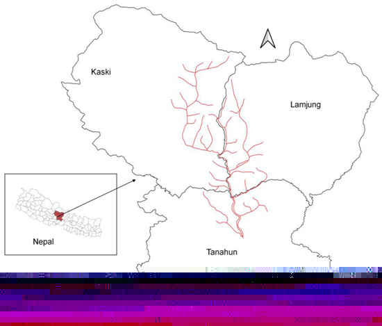 Madi River corridor and tributaries where field study was carried out after identifying potential suitable nesting habitat of Egyptian vultures in Tanahun, Kaski, and Lamjung districts, Nepal.