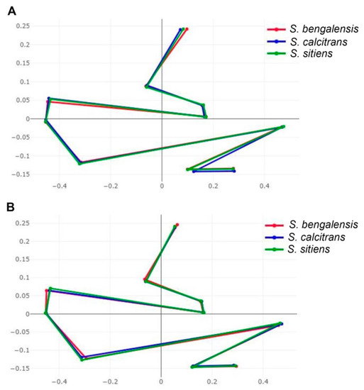 - Rohlf, F.J. Rotational fit (Procrustes) methods. In Proceedings of the Michigan Morphometrics Workshop; University of Michigan Museum of Zoology: Ann Arbor, MI, USA, 1990; pp. 227–236. [Google Scholar]