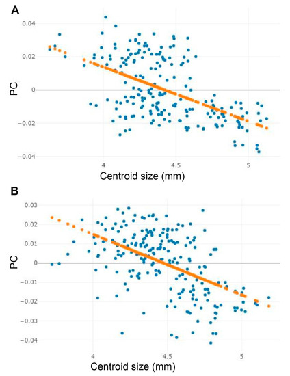 - Klingenberg, C.P.; McIntyre, G.S. Geometric Morphometrics of Developmental Instability: Analyzing Patterns of Fluctuating Asymmetry with Procrustes Methods. Evolution 1998, 52, 1363–1375. [Google Scholar] [CrossRef]