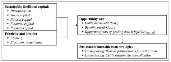 Three main concepts involving households’ decisions to suggest livestock sustainable intensification strategies oriented to land-sparing and land-sharing approaches along the altitudinal gradient studied were used.
