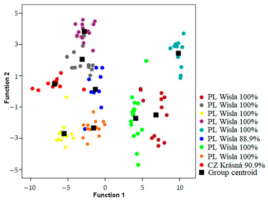 n = 241, Wilks’ lambda = 0.0001) showed the second-best classification success with 79.3% (82.6%) classification accuracy. All five discriminant functions were highly significant (