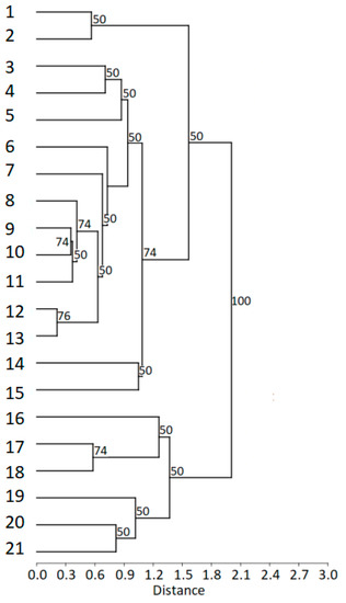 26]. We used 1000 bootstrap replicates to show the nodal support of the dendrogram [