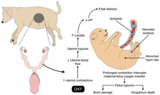 Hence, when using OXT in a parturient female, it is essential to consider the benefits but also the possible adverse effects on the newborn, since the use of the hormone can fasten the parturition process but might result in negative outcomes for the fetus.