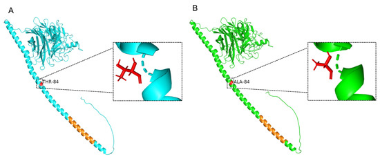 HN glycoprotein is a multifunctional protein that induces efficient membrane fusion of the virus with the host cell and mediates virus entry into the host cell through a complex mechanism [24]. The predicted structure of the HN protein showed that the mutation at 84 sites changed from alanine to threonine. Alanine was a hydrophobic aa and threonine was a hydrophilic aa. A hydrophobic aa is generally located within proteins and plays an important role in maintaining the protein structure and antibody–antigen interactions; further studies are needed to determine the effect of mutations on the viral protein structure and function. In addition, previous studies showed that aa mutations in HN protein affect the formation of binding sites to sialic-acid-containing receptors, for instance, the loss of the binding site caused by the Arg516 mutation in NDV HN significantly reduced the fusion properties and growth rate of the virus, demonstrating that the binding site on the NDV HN protein is closely related to virus infection and replication [29]. Moreover, previous findings indicated antigenicity differences between BPIV3 isolates, mainly in the epitope envelope glycoprotein HN, differences that are related to their pathogenicity and virulence in animals [30]. Meanwhile, in a study of the HN protein of NDV in Paramyxoviridae, it was found that a single nucleotide mutation in the HN protein either made the virus a highly pathogenic strain or reduced the virulence of the virus [31,32]. Therefore, the effects of the unique mutation of the HN protein in BPIV3 genotype C of the Chinese strain on the fusion performance, pathogenicity, and virulence of the virus must be further studied.