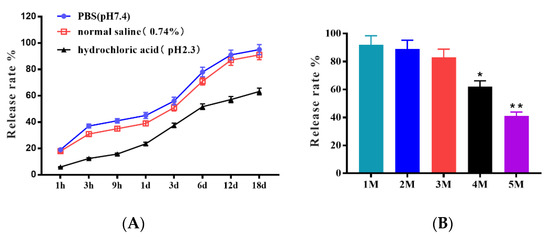 2.4. In Vitro Release Experiment of Microcapsules in Different Saline Solutions, pH Values, and Room Temperature Storage Tolerances