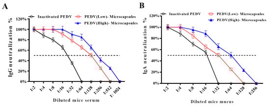 3.3. The Specific IgG and IgA Neutralized PEDV