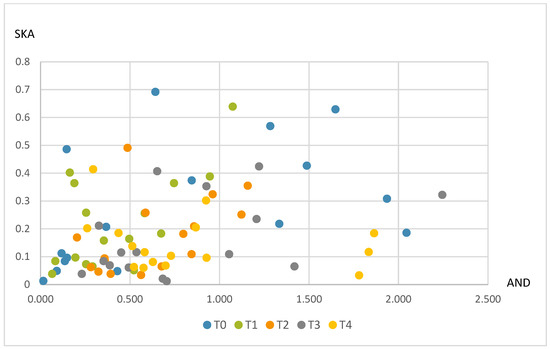 Diversity of androstenone (AND) and skatole (SKA) regarding tannin treatments.