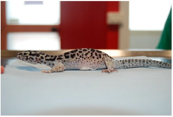 - Bradley, T.; Nieves, D. Leopard gecko, Eublepharis macularim, captive care and breeding. Bull. Assoc. Reptil. Amphib. Vet. 1999, 9, 36–40. [Google Scholar] [CrossRef]