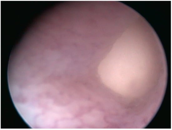 Rigid endoscopy is a useful tool for the direct and also indirect evaluation of the reproductive tract in reptiles [,,,]. Coelioscopy is used as a direct method for the evaluation of the reproductive tract in chelonians, snakes, and lizards [,,,]. In tortoises, cystoscopy permits an indirect visualization of the coelomic organs in transparency through the urinary bladder wall [,]. This technique also permits the detection of retained eggs in the urinary bladder as well as their removal [,,]. To the authors’ knowledge, this is the first report of endoscopic-assisted egg removal through cloacoscopy in leopard geckos. All three cases presented here were diagnosed as obstructive postovulatory stasis in three female leopard geckos. As stress can be a predisposing factor for dystocia [,], it is possible that the already pregnant female, recently acquired and recently housed in a new environment, developed postovulatory stasis due to a high level of stress. As sexually active males can attempt mating persistently, their constant presence in the same cage, together with the female, could have been a predisposing factor to dystocia in case 2 and case 3 [,].